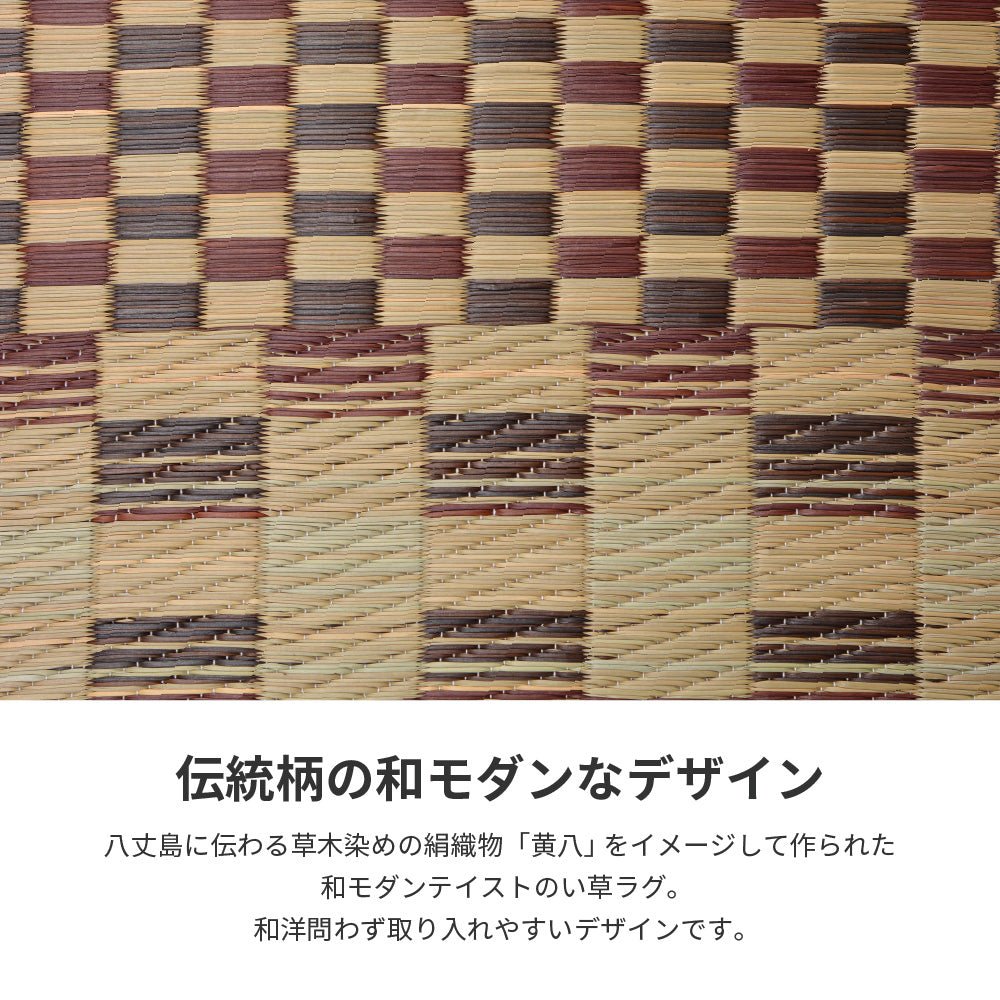八丈島に伝わる草木染めの絹織物「黄八」 をイメージしてデザインされた和モダンテイストのい草ラグ