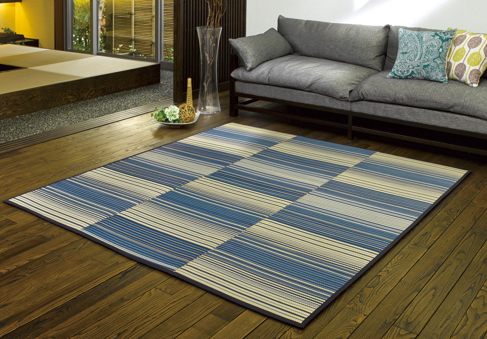 和モダンテイストのマルチボーダー柄い草ラグ 若竹