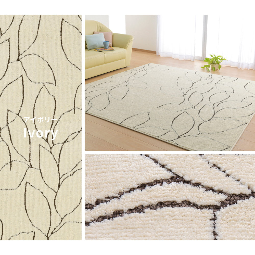 ふんわりとやさしいマシュマロタッチ!リーフ柄の国産ソフトタッチラグ レジェ