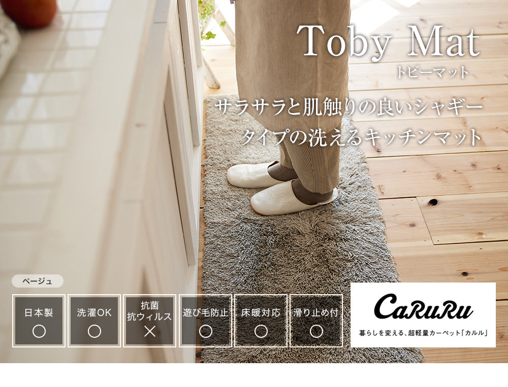 サラサラと肌触りのいいシャギータイプの洗える丈夫なナイロン素材日本製キッチンマット トビーキッチンマット