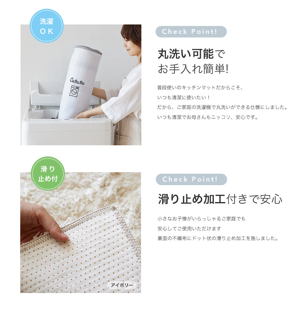 サラサラとした肌触りの良い、シャギータイプの洗えるキッチンマットです。