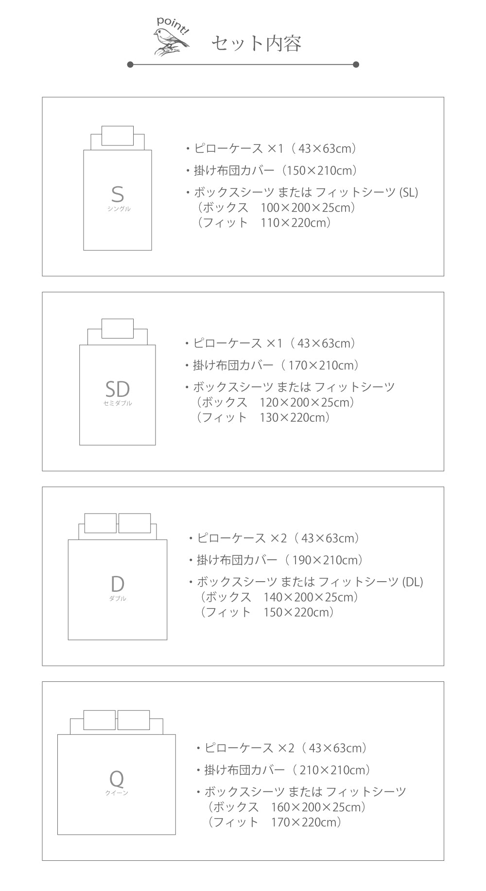綿100%!オールシーズン使えて肌触りも柔らか<ボックスシーツ・掛け布団カバー・ピローケース4点SET ダブルサイズ>