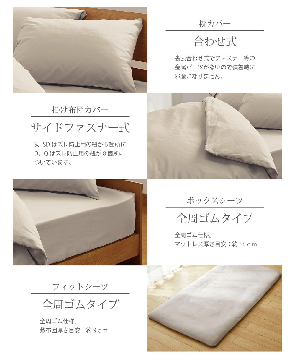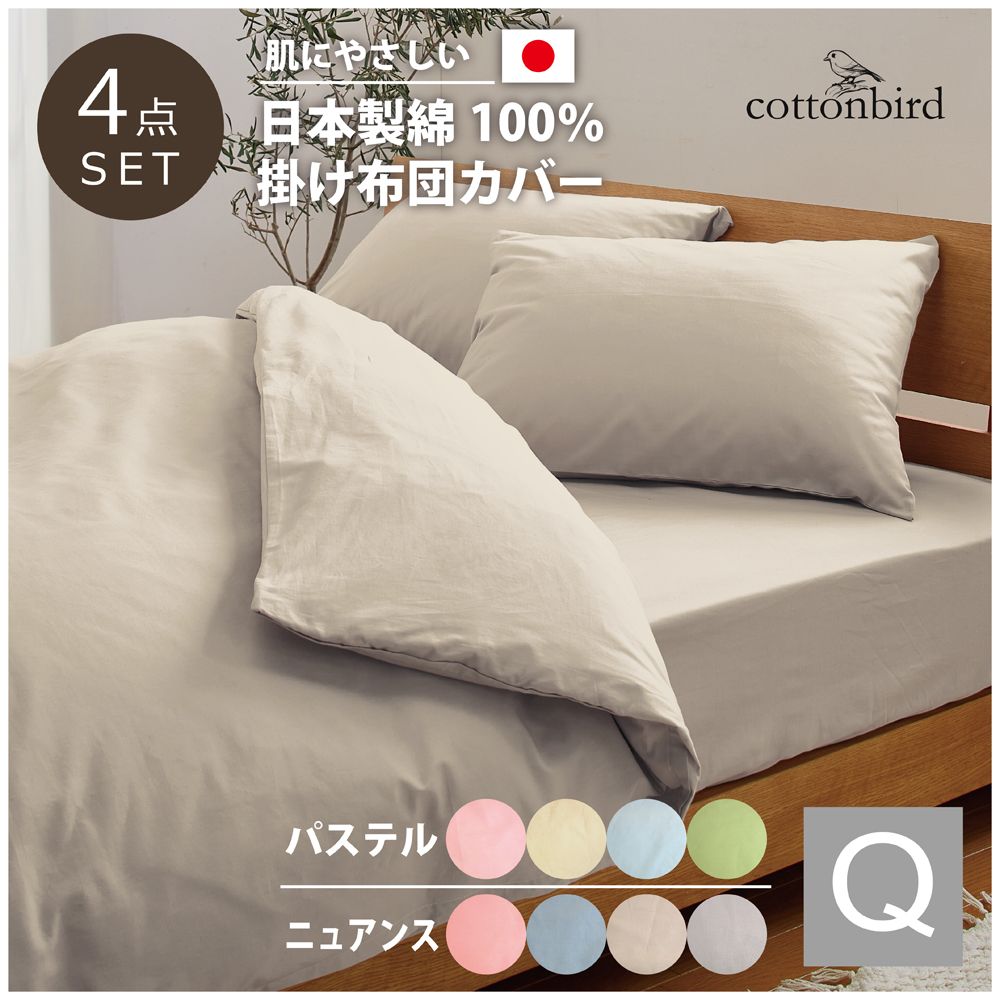 綿100%!オールシーズン使えて肌触りも柔らか<ボックスシーツ・掛け布団カバー・ピローケース4点SET クイーンサイズ>