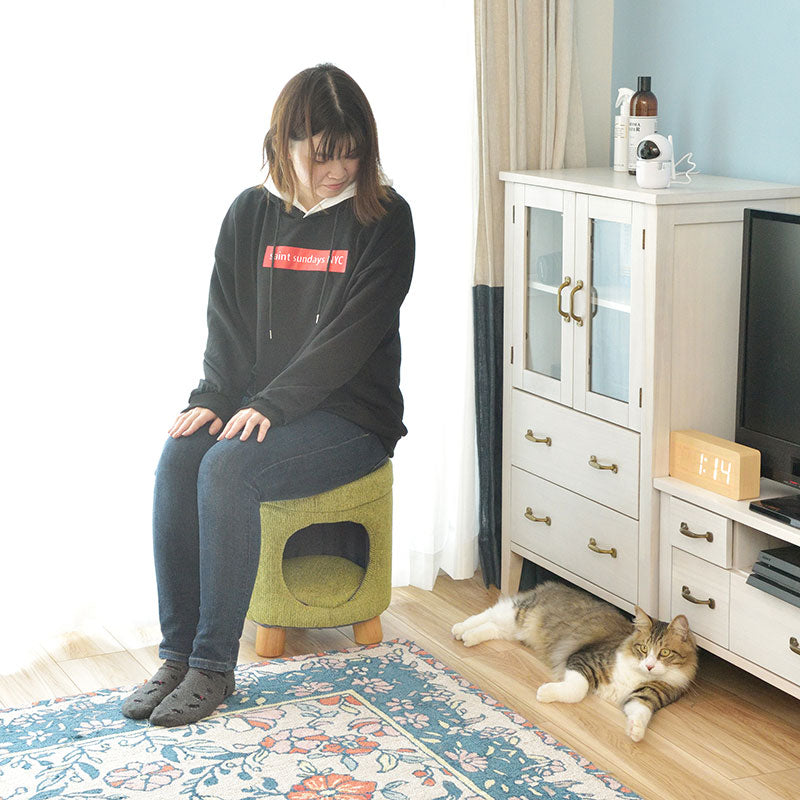 - ペットがくつろげるペットハウススツール。座って一緒にくつろぐことができます。