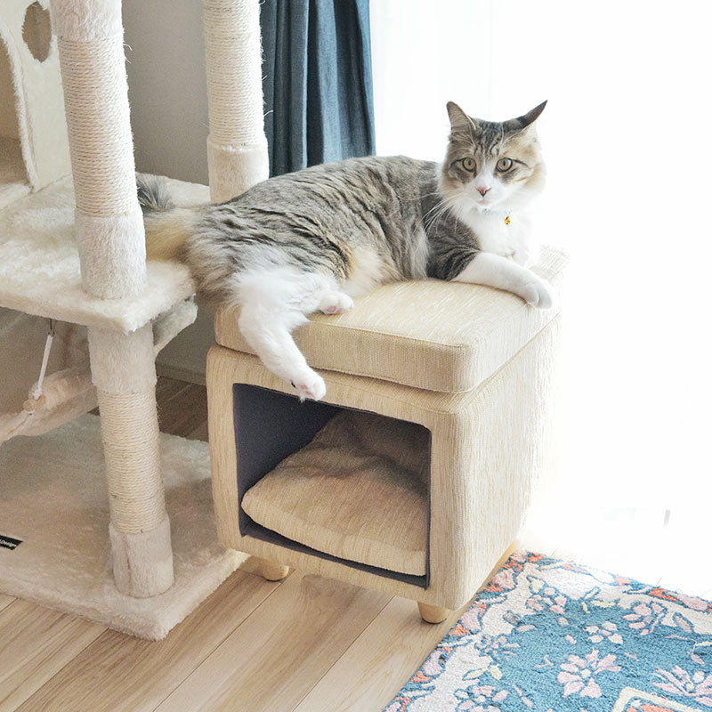 - ペットがくつろげるペットハウススツール。座って一緒にくつろぐことができます。