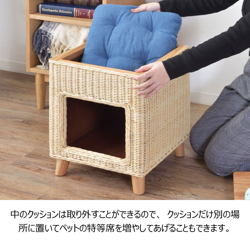 ■中のクッションは取り外すことができるので、クッションだけ別の場所に置いてペットの特等席を増やしてあげることもできます。