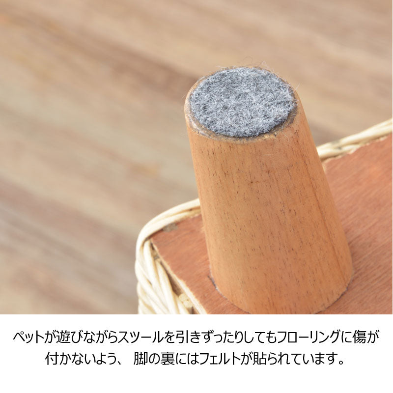 ■ペットが遊びながらスツールを引きずったりしてもフローリングに傷が付かないよう、脚の裏にはフェルトが貼られています。