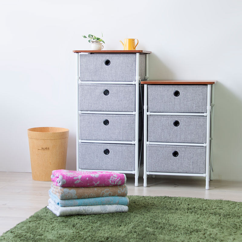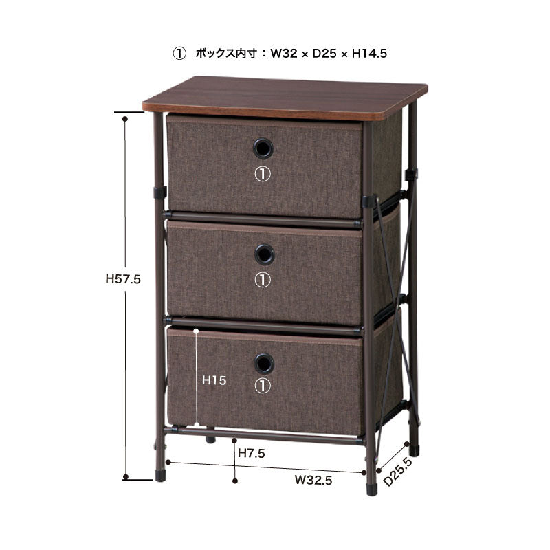 組み立てカンタンで折り畳みできる3段チェスト