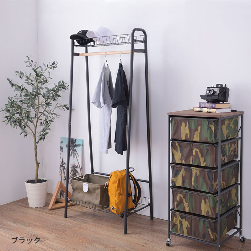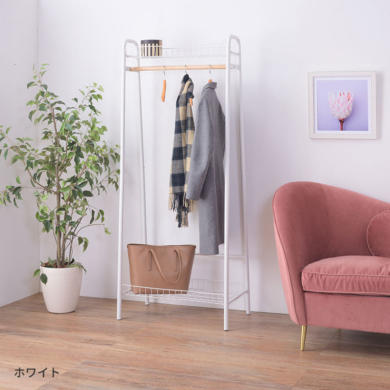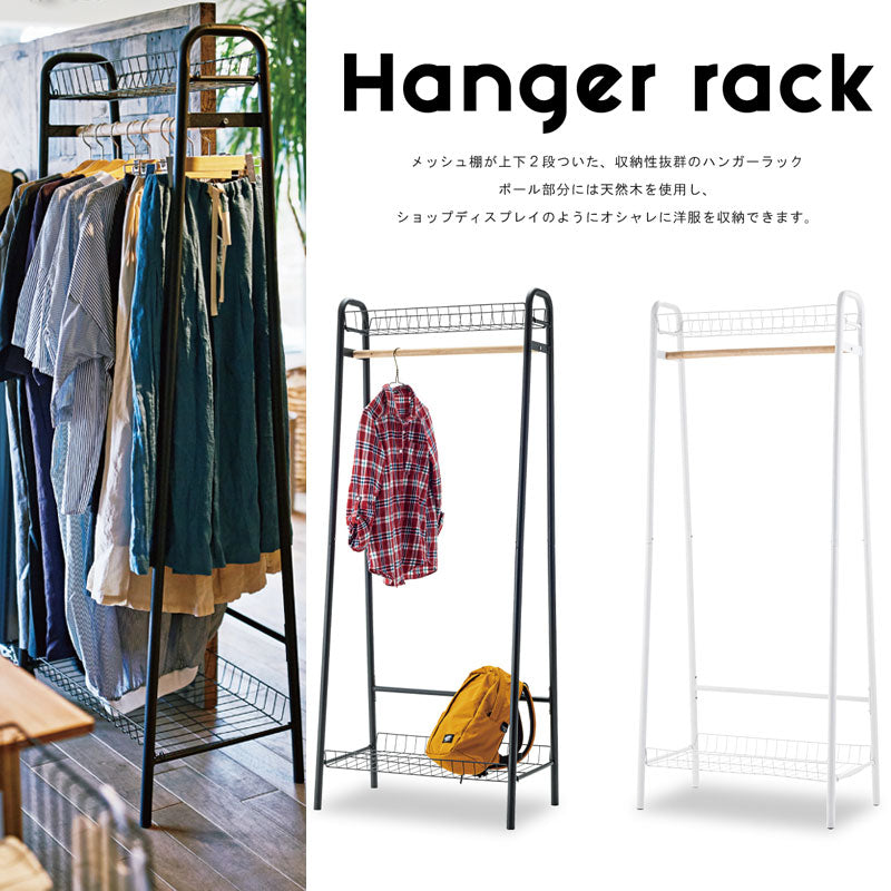 メッシュ棚が上下2段についた収納性抜群のハンガーラック