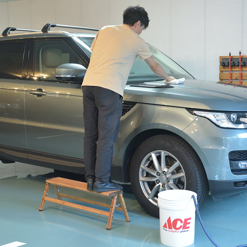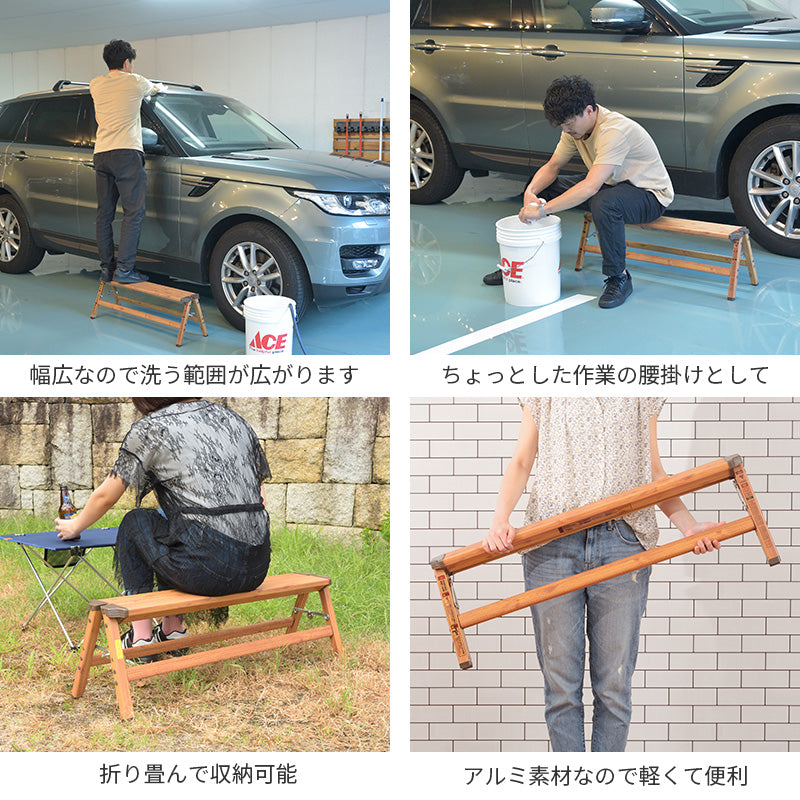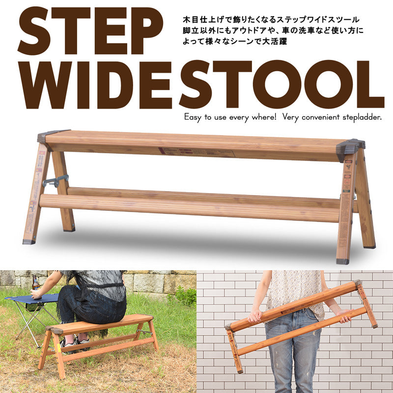 - 木目仕上げで飾りたくなるステップワイドスツール。 脚立以外にもアウトドアや、車の洗車など使い方によって様々なシーンで大活躍。