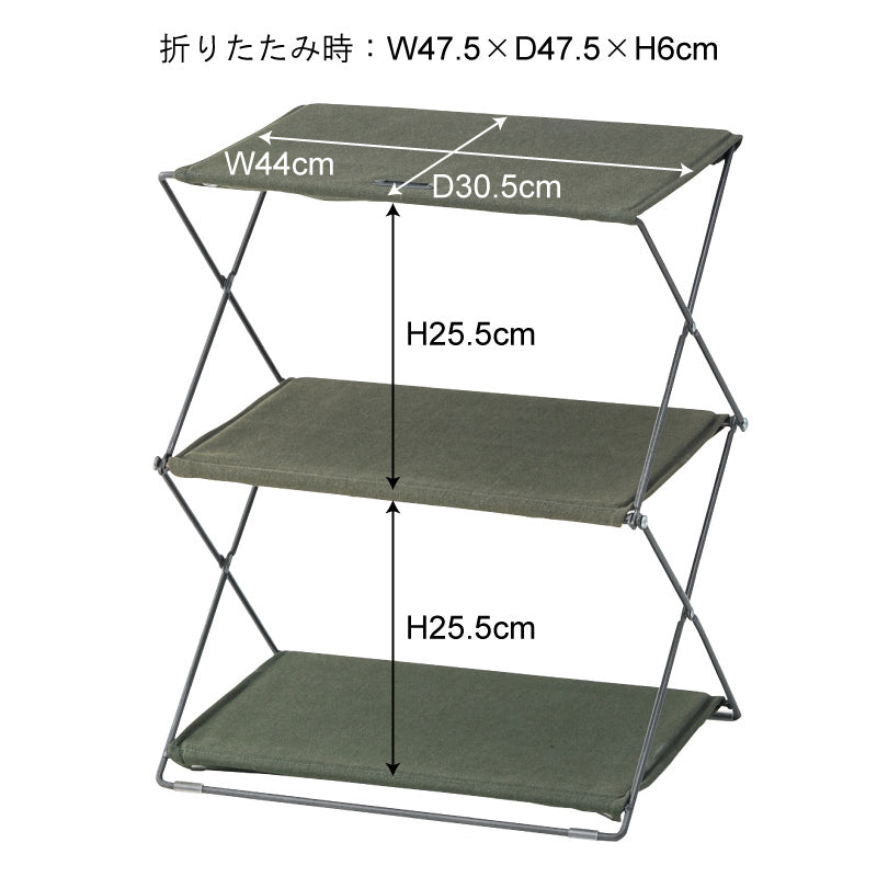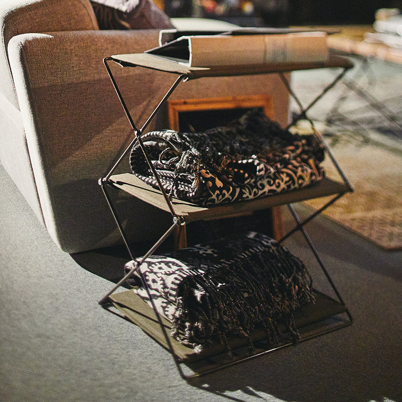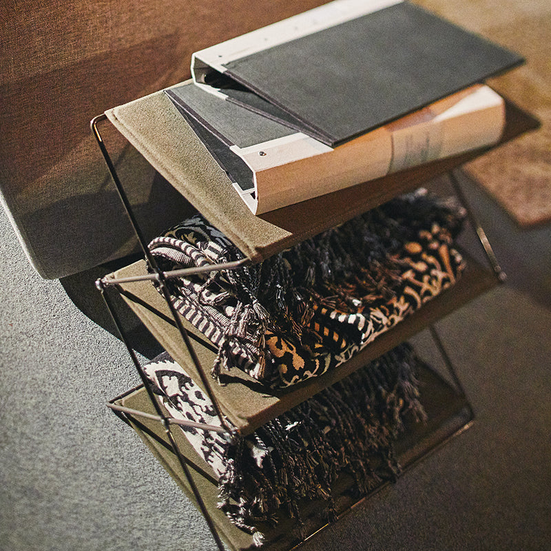 スチールとファブリックを組み合わせたフォールディングシェルフ2D