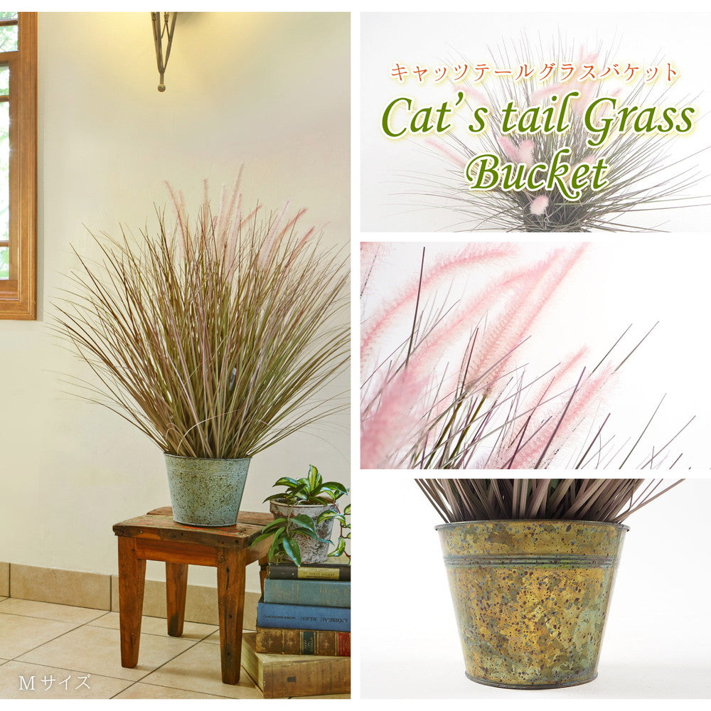 シャビーなバケツ入りでオシャレ度アップ♪バケツシリーズ!オシャレで枯れない人工観葉植物 キャッツテールグラスバケット