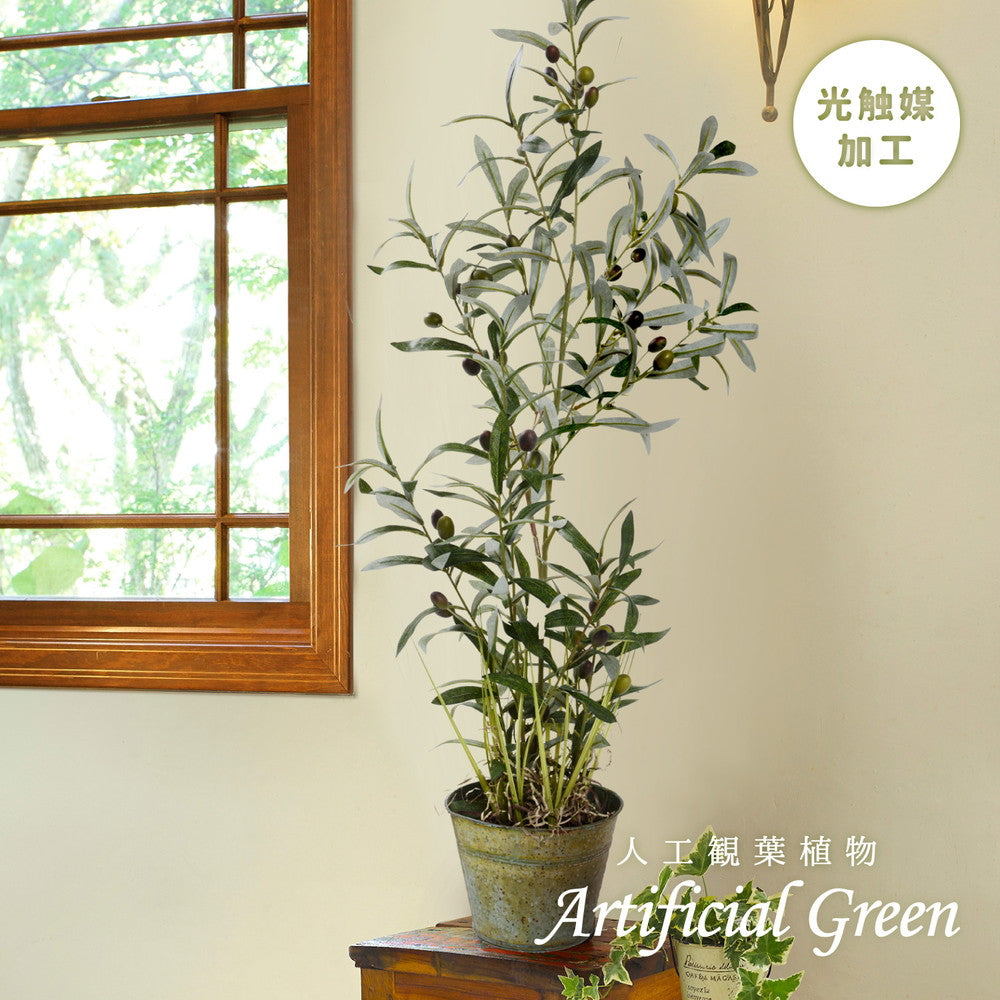 シャビーなバケツ入りでオシャレ度アップ♪バケツシリーズ!オシャレで枯れない人工観葉植物 オリーブツリーグラスバケット
