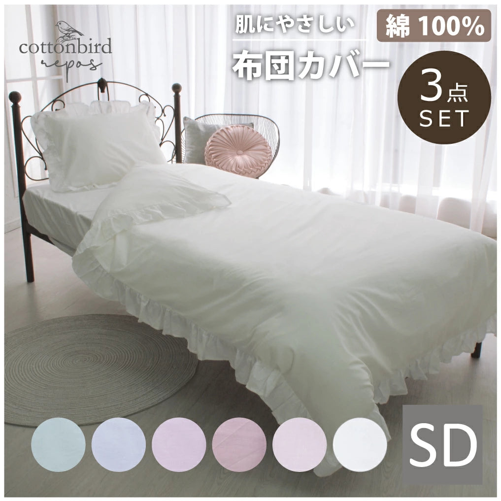 お肌にやさしい綿100%洗えるフリル付き布団カバー3点セット