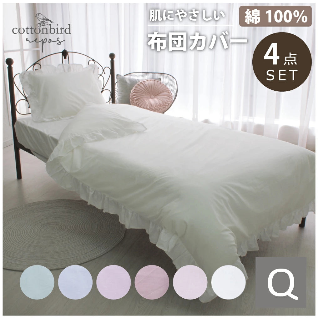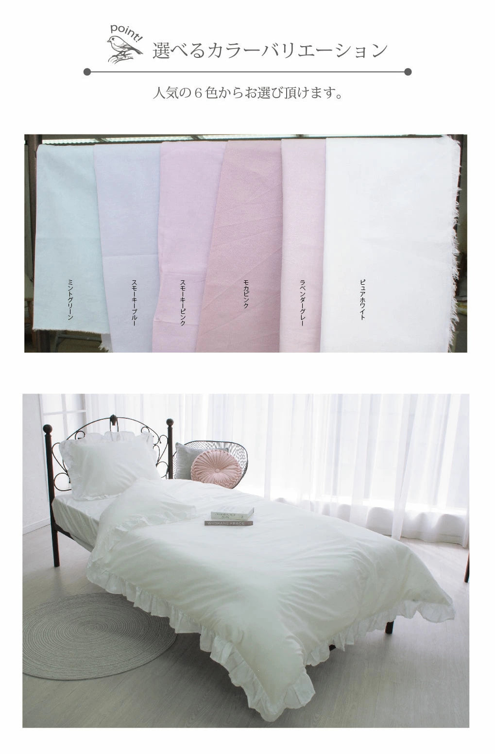 お肌にやさしい綿100%洗えるフリル付き布団カバー4点セット